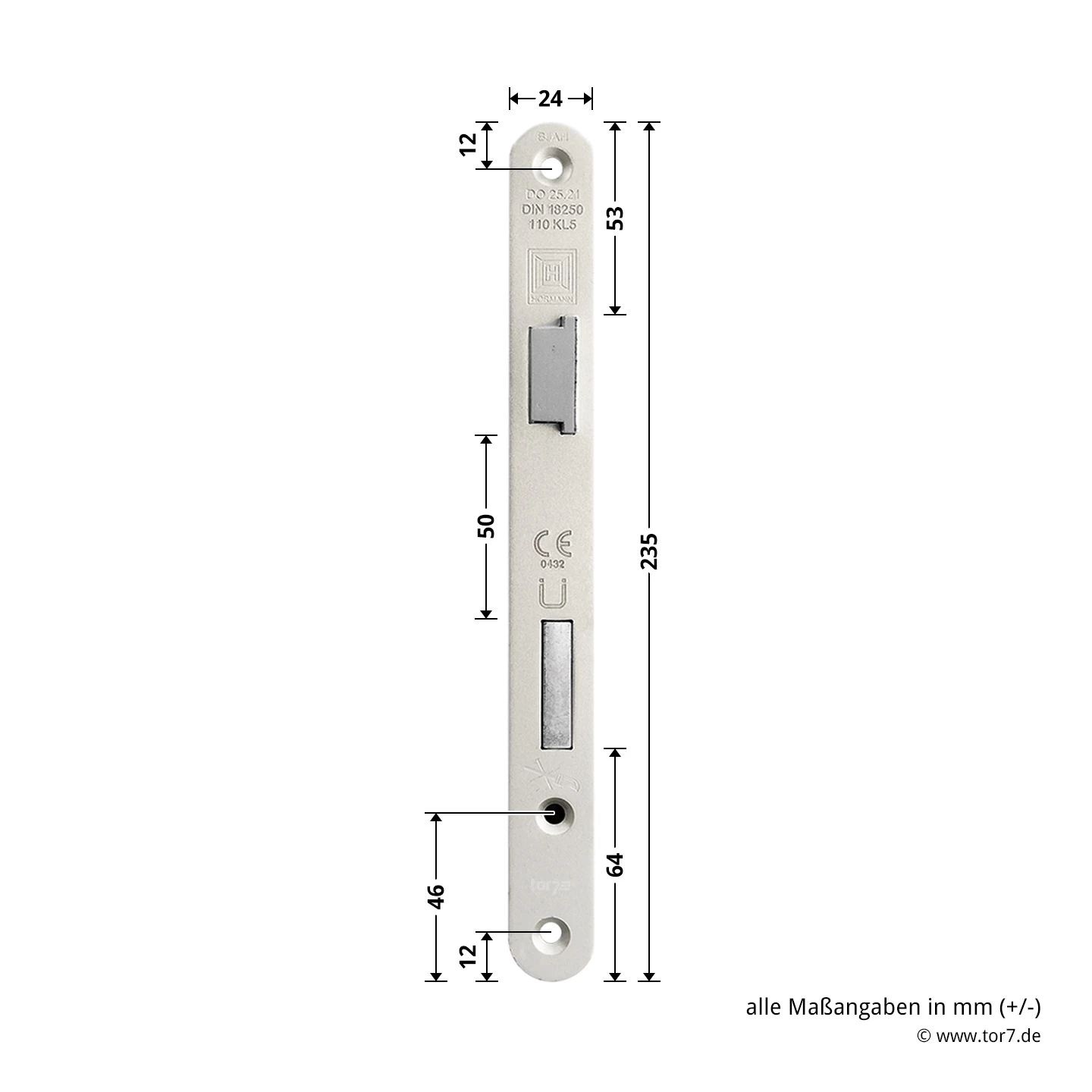 Das Einsteckschloss eignet sich für einflügelige und zweiflügelige Türen mit Türanschlag DIN rechts und sorgt für die Verriegelung der oben genannten Türtypen. Der silberne, 24 mm breite, gerundete Stulp ist aus hochwertigem, vernickeltem Stahl gefertigt. Das Schloss ist mit einer 9 mm Nussvierkant ausgestattet und eignet sich so beispielsweise für eine Hörmann Feuerschutz-Drückergarnitur Typ D110 Kurzschild in Kunststoff-schwarz oder Hörmann Feuerschutz-Wechselgarnitur Typ D110 in Kunststoff schwarz. Als Original-Ersatzteil ist dieser Schlosstyp geprüft und zugelassen. So kann der Einbau auch in Funktionstüren mit geprüften Leistungseigenschaften wie einigen Feuerschutztüren erfolgen.