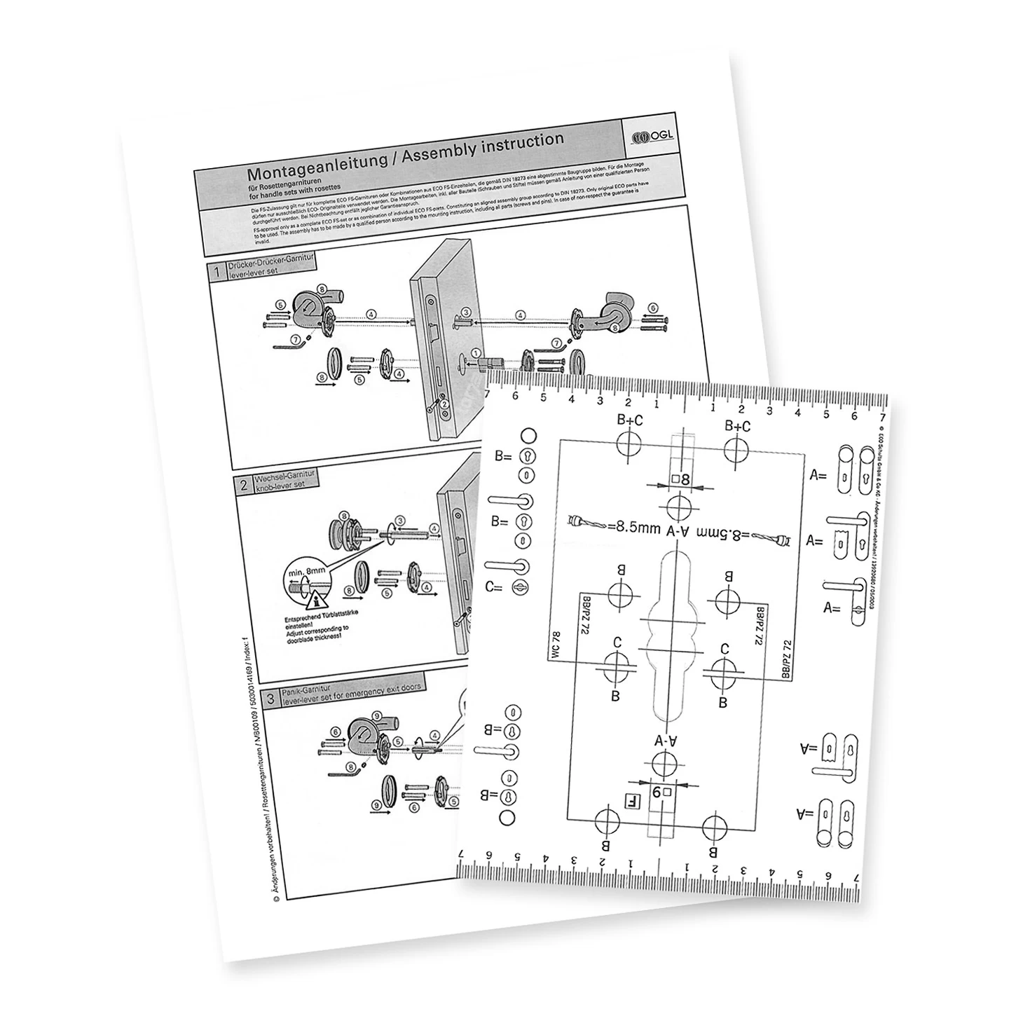 - Fremdfabrikate mit Türblattstärke zwischen 45 und 65 mm und mit 9 mm Schlossnuss