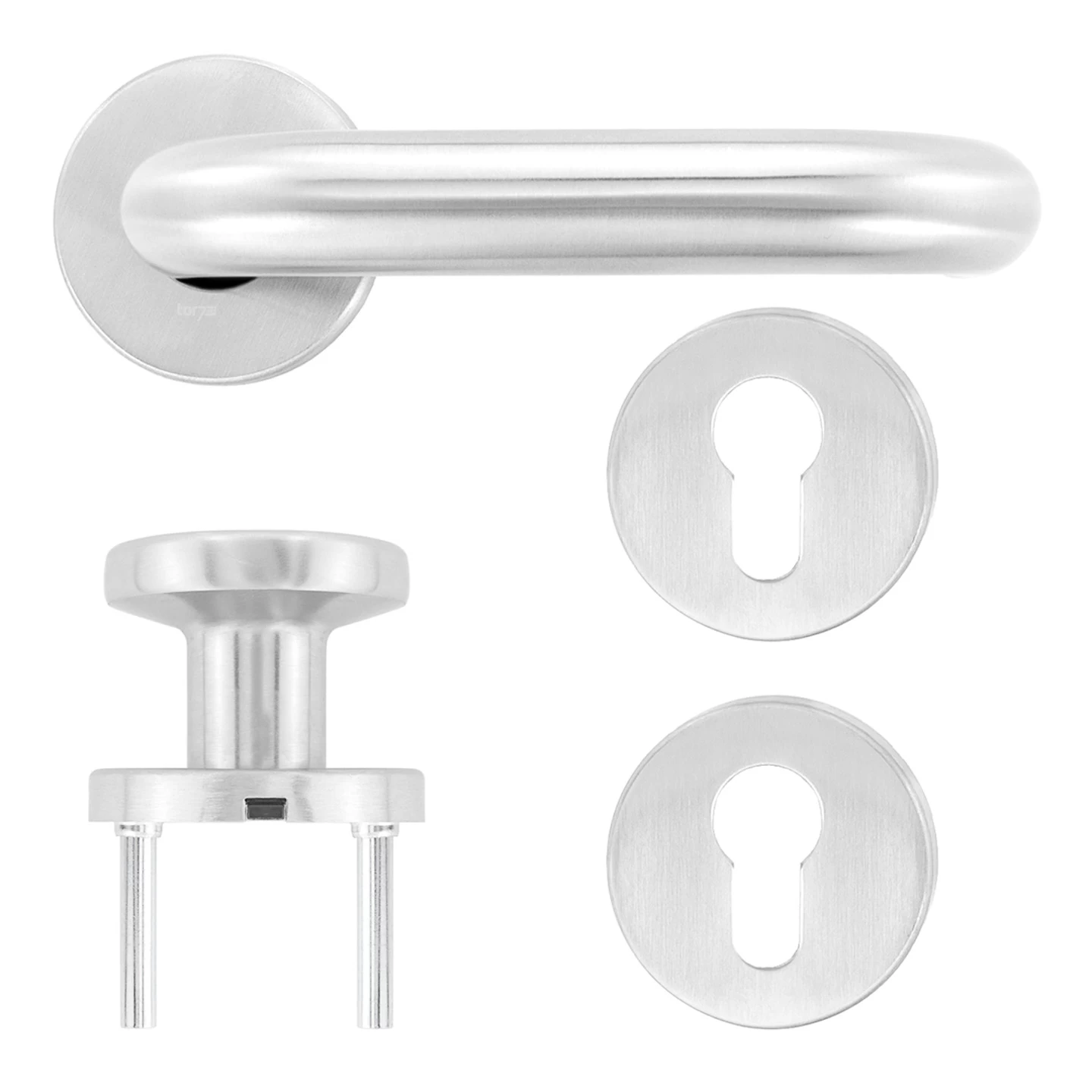 - Drücker Typ D110, U-Form, Rosette, Edelstahl, Grundplatte Stahl