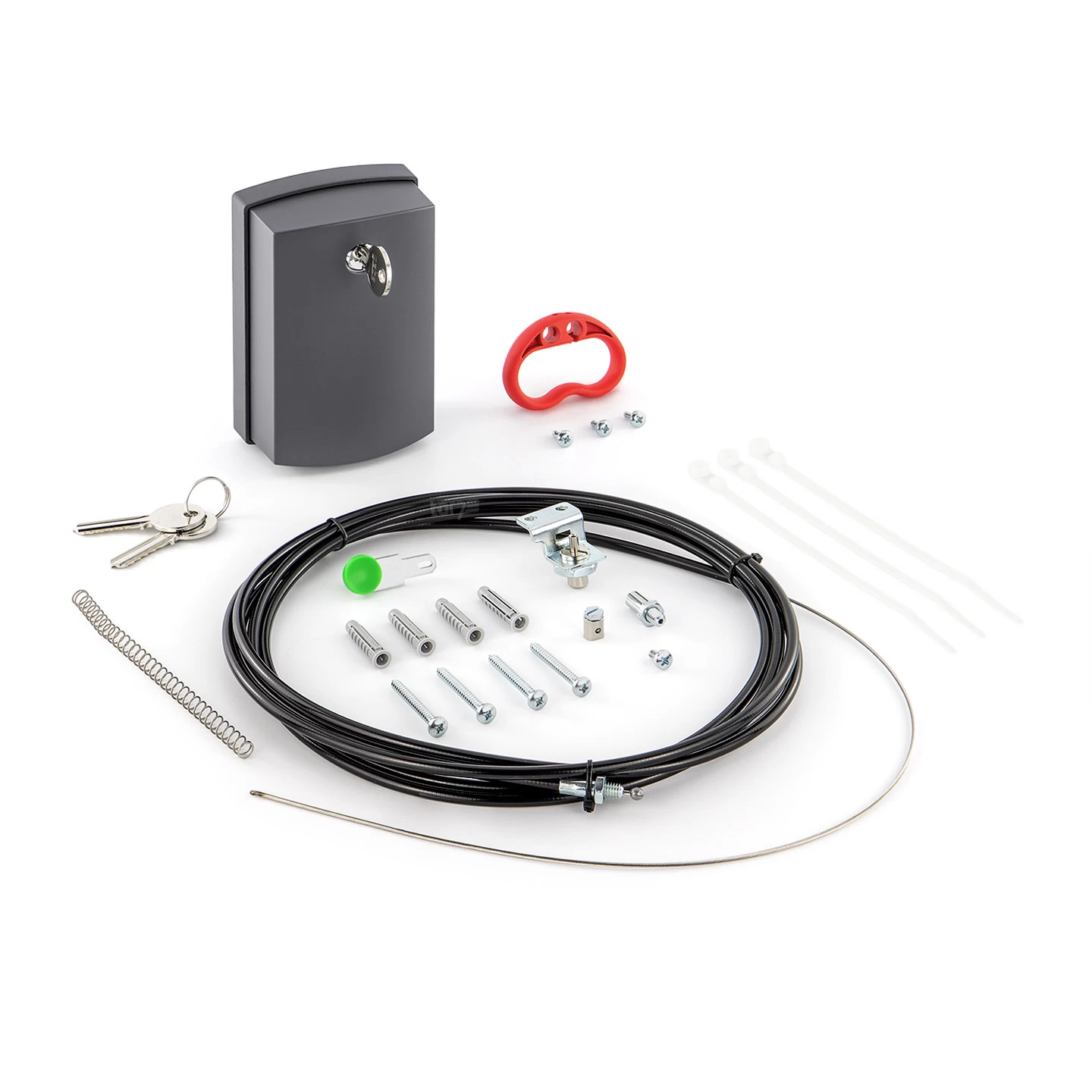 - Hörmann Notentriegelung für RollMatic Rolltore und Rollgitter, beinhaltet: Schlosskasten, Profil-Halbzylinder mit 3 Schlüsseln, Bowdenzug 20 Meter, Montagematerial, Montageanleitung