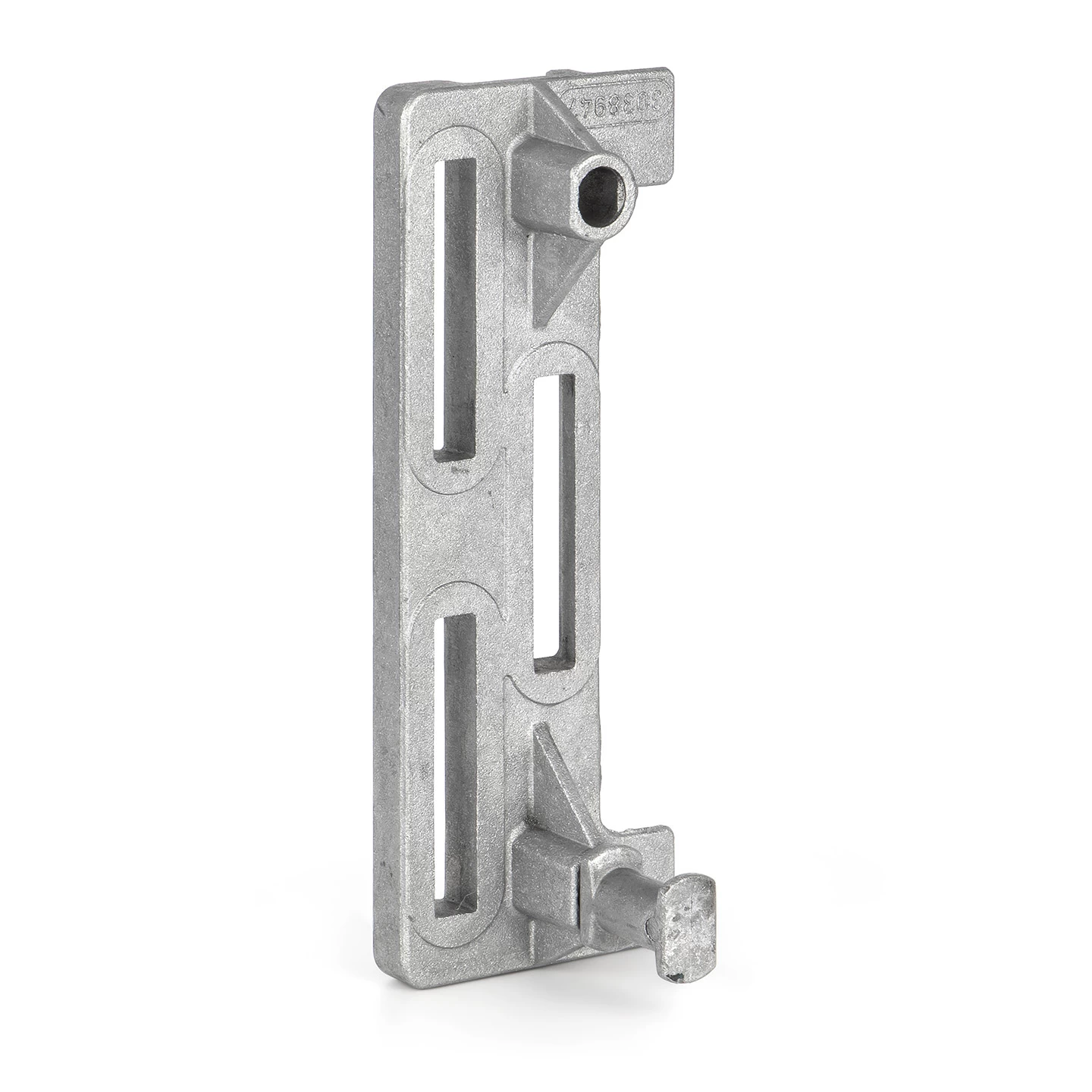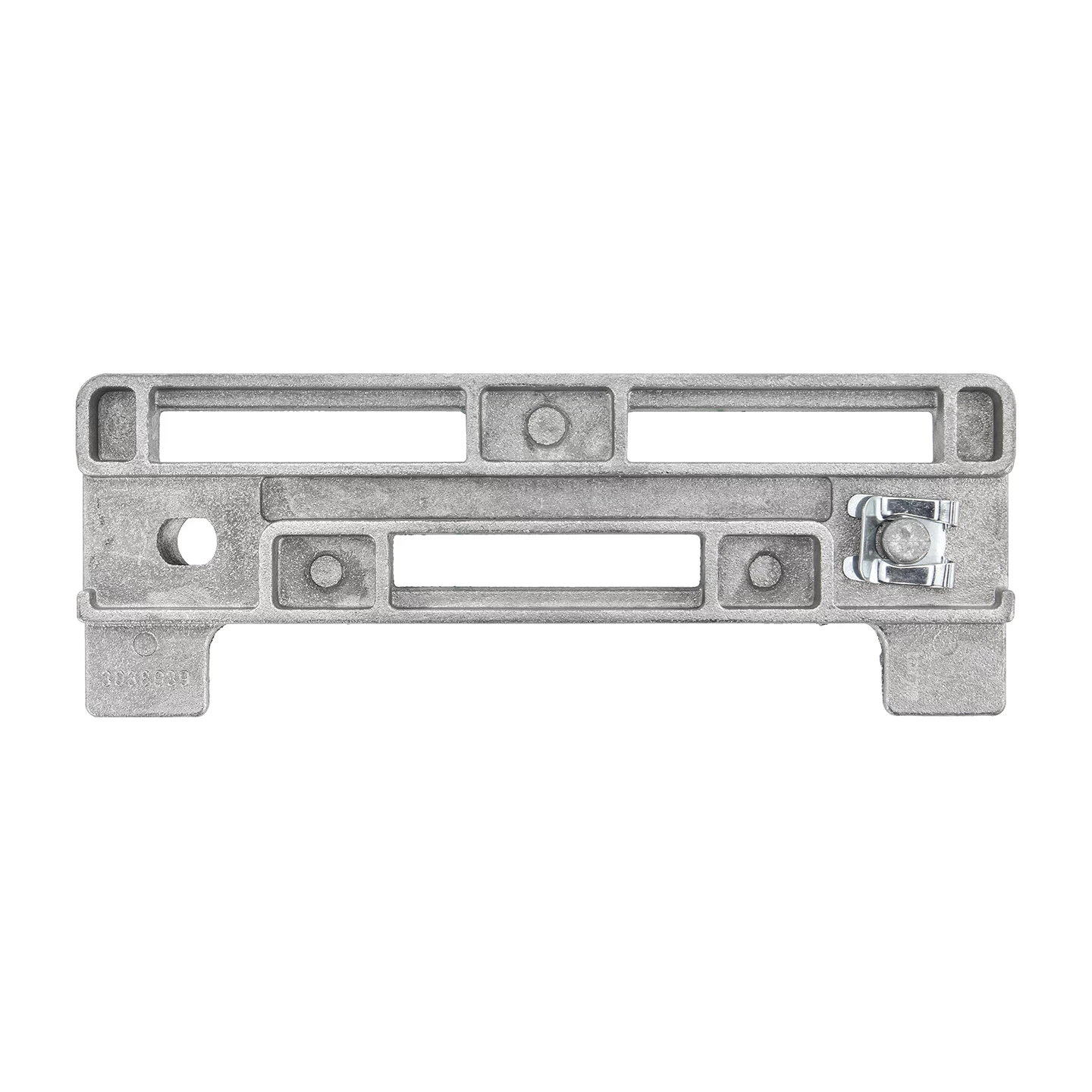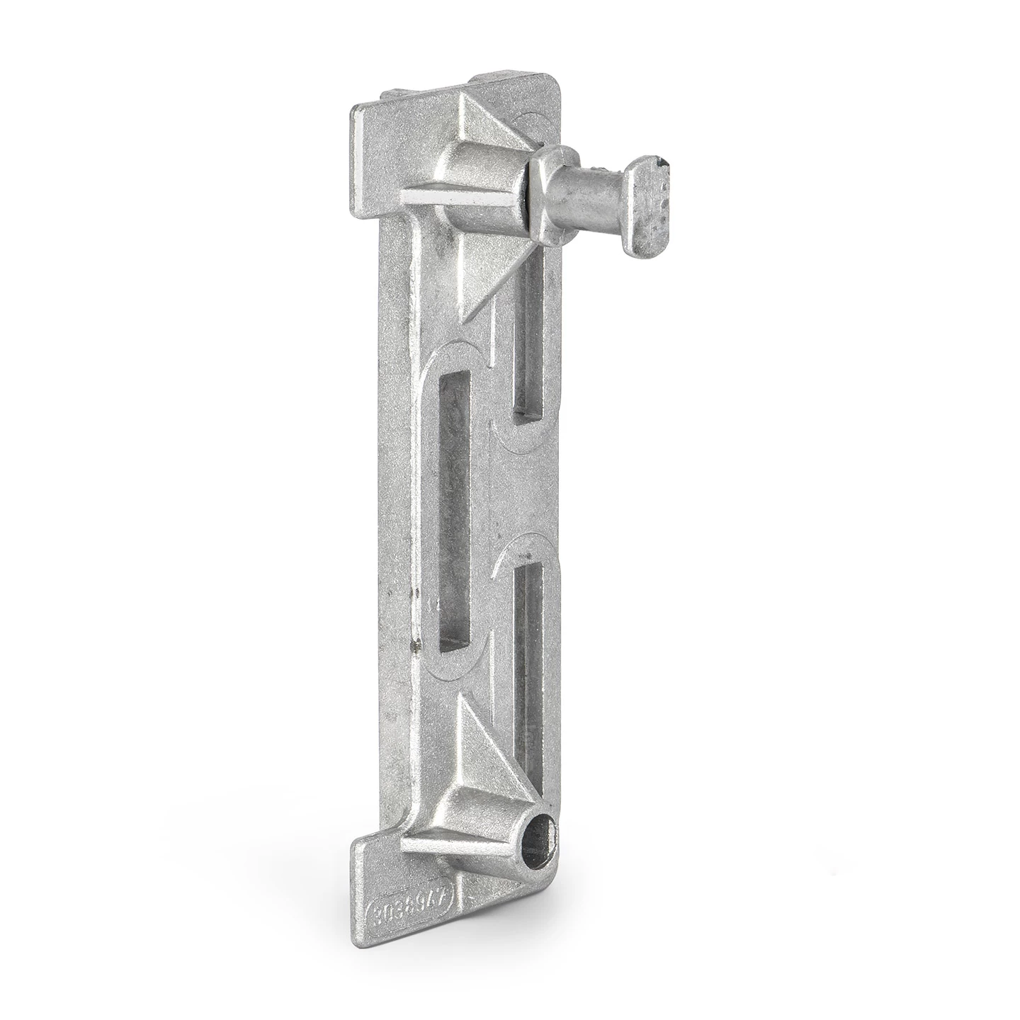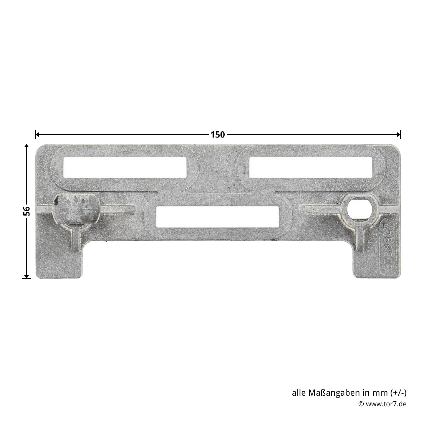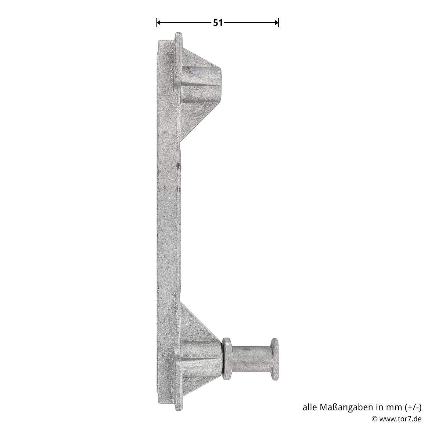 Der eigentliche Verschlussbolzen ist ca. 17 mm hoch und ragt aus einer ca. 150 mm langen Grundplatte heraus. Die gesamte Einheit ist dabei als ein Teil aus robusten Aluguss gefertigt. Je nach Tormodell und Ausführung wurde der Hörmann Verschlussbolzen, Tore mit Kassette oder ohne Sicke entweder direkt an der Torzarge oder auch über ein Tragblech montiert. Wichtig ist also zu beachten, dass beim Austausch des Bolzens entsprechende Teile weiter verwendet werden.