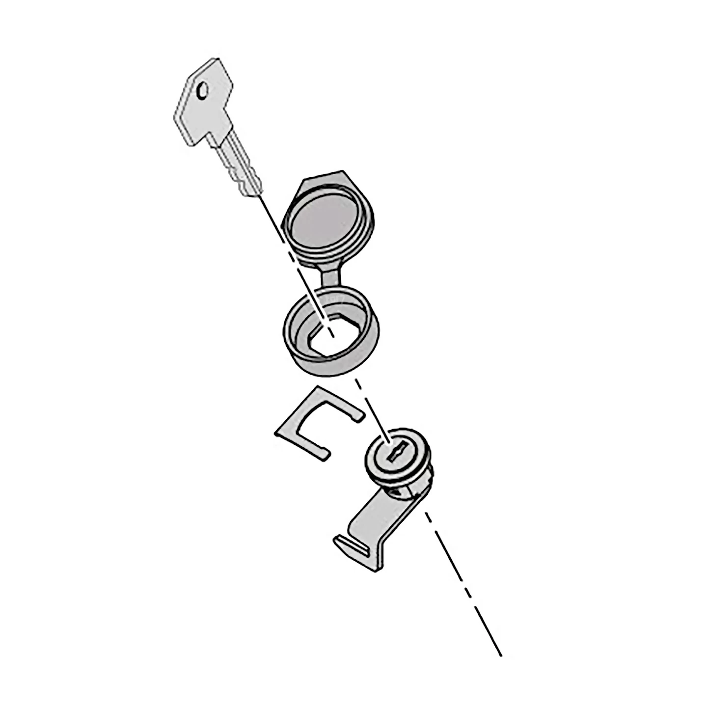 Das SOMMER Hebelschloss mit Schlüssel twist 350 eignet sich für den SOMMER Drehtorantrieb twist 350, 1 flg./2 flg. und sichert das Gehäuse hierbei vor unbefugtem Zugriff. Die Auslieferung erfolgt mit Staubkappe und Schlüssel. Um den Antrieb im Falle eines Defekts oder Stromausfall zu entriegeln, ist dieser Antrieb mit einem Notlösehebel ausgestattet. Wird dieser auf die Position geöffnet gestellt, lässt sich das Tor einfach mit der Hand bewegen. Damit dieser Hebel vor Fremdzugriffen geschützt ist, ist das Gehäuse mit einem Hebelschloss ausgestattet. Über dieses lässt sich der Gehäusedeckel mit einer Schlüsseldrehung ganz einfach freigeben, um die notwendige Betriebsstellung vorzunehmen. Bei Defekt oder Beschädigungen am vorhandenen Hebelschloss, sollten Sie den Austausch gegen dieses Ersatzteil umgehend vornehmen, damit der Antrieb weiterhin vor einem unberechtigten Zugriff auf den Notlösehebel gesichert ist.